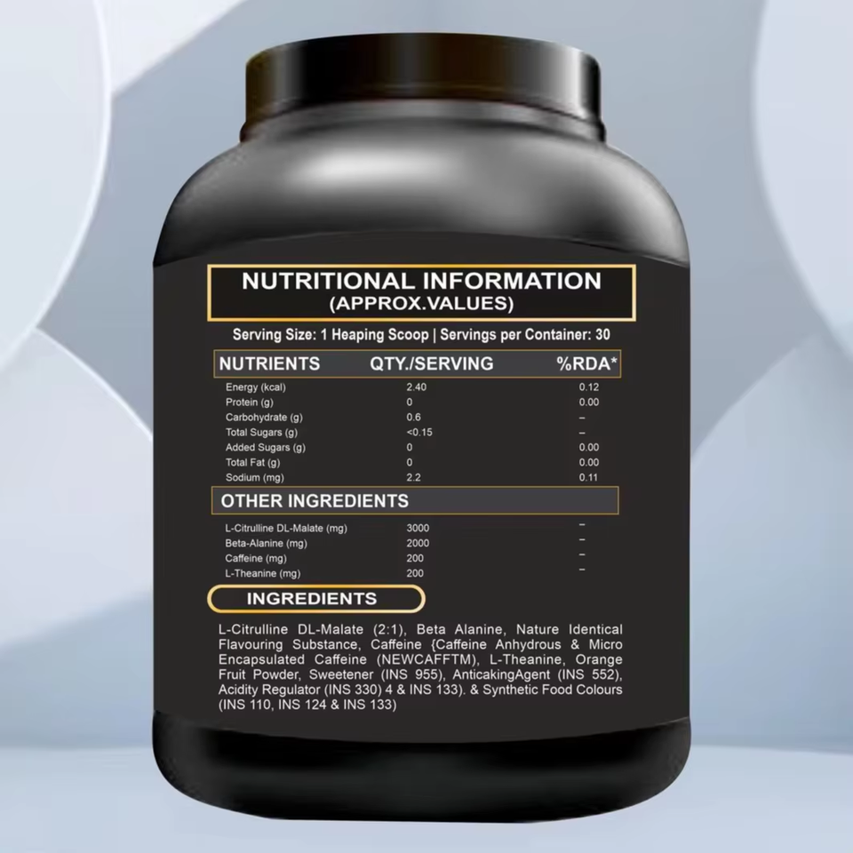 ส่วนผสมหลัก:แอล-ซิทรูลีน ดีแอล-มาเลต, เบต้า-อะลานีน, คาเฟอีน, แอล-ธีอะนีน