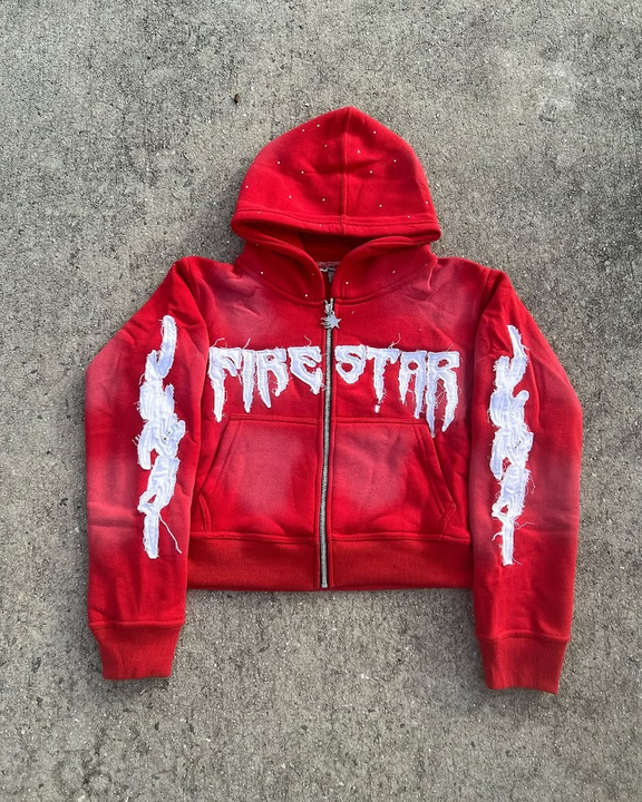 เสื้อฮู้ดดี้แบบซิป รุ่น OEM ODM สตรีทแวร์ทรงบ็อกซี่ฟิตแบบครอป ตกแต่งเพชร ล้างสีแบบแอซิดฟอกซ์ สีซีดจางแบบซันเฟด ผ้าหนา 480gsm ประดับคริสตัล