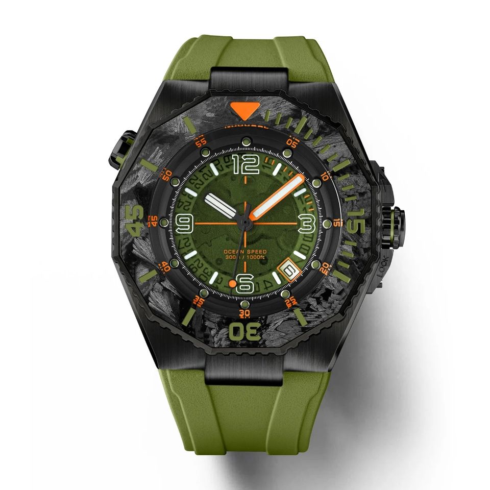 นาฬิกาข้อมือสำหรับผู้ชาย30ATM ดำน้ำดูปะการังคาร์บอนไฟเบอร์ออโต้เรืองแสงสุดหรูผลิตตามสั่งได้ตามต้องการ