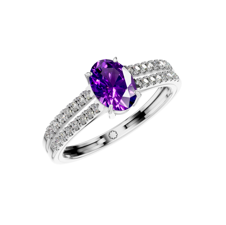 สไตล์:แหวนพลอยอเมทิสต์สำหรับปลูกในห้องแล็บพร้อมที่ง่าม