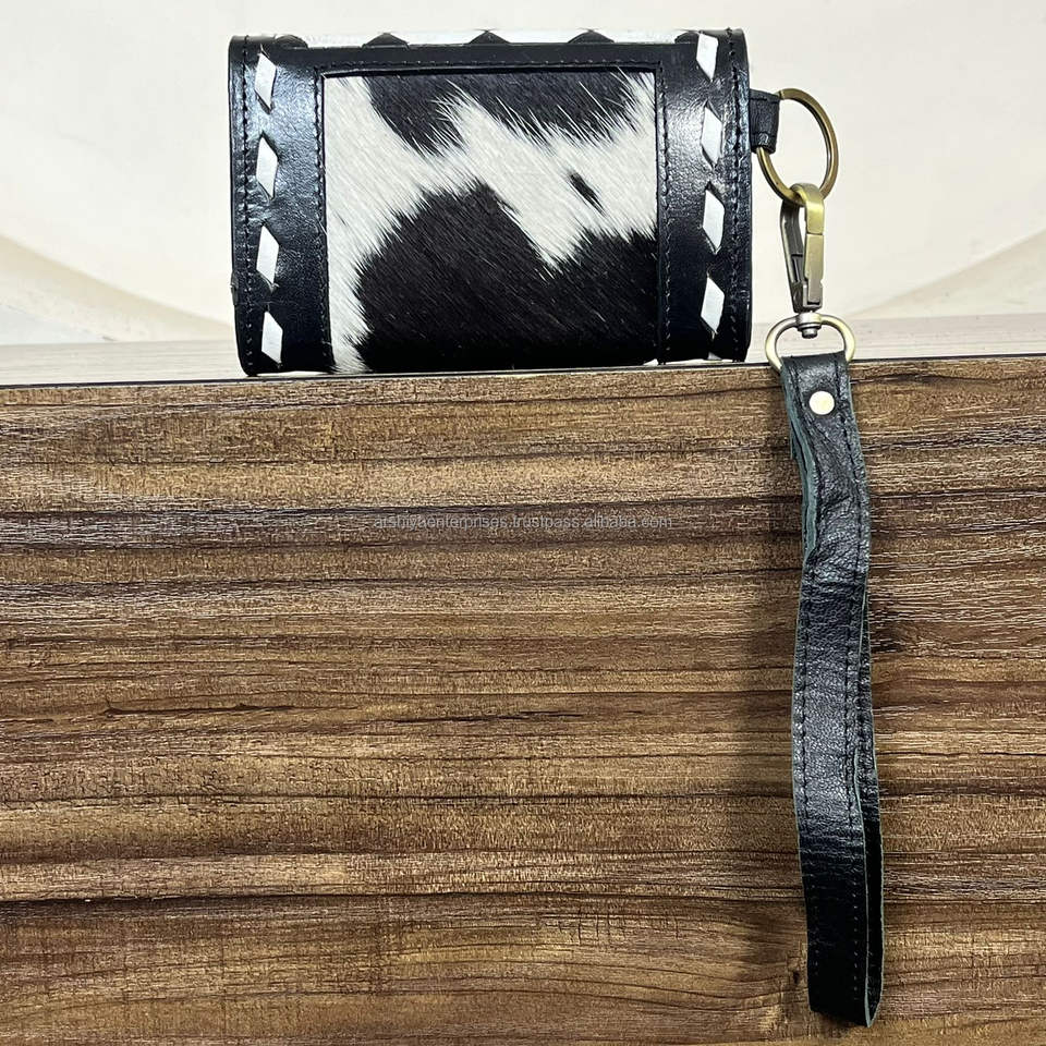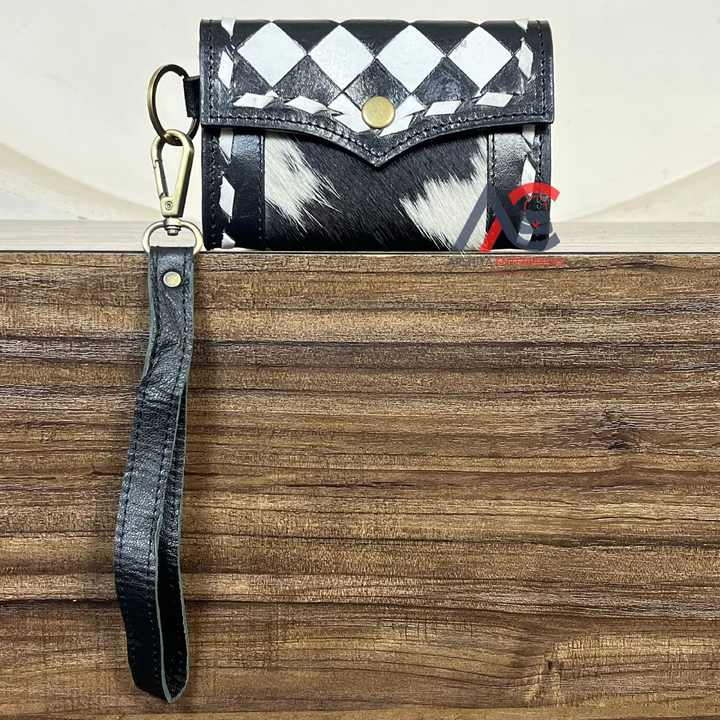 กระเป๋าใส่เหรียญหนังวัวแท้แบบทำมือ ดีไซน์ลายตารางหมากรุก พร้อมสายคล้องมือ รับผลิตแบบ OEM ODM สำหรับผู้หญิง พร้อมช่องใส่บัตรเครดิต