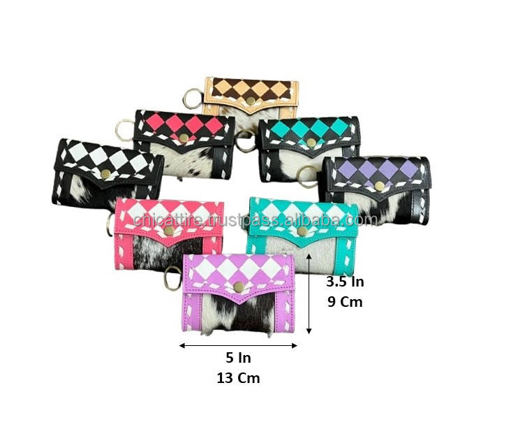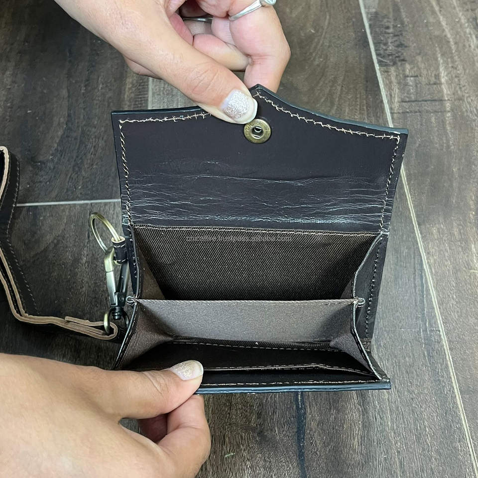 กระเป๋าใส่เหรียญหนังวัวแท้แบบทำมือ ดีไซน์ลายตารางหมากรุก พร้อมสายคล้องมือ รับผลิตแบบ OEM ODM สำหรับผู้หญิง พร้อมช่องใส่บัตรเครดิต