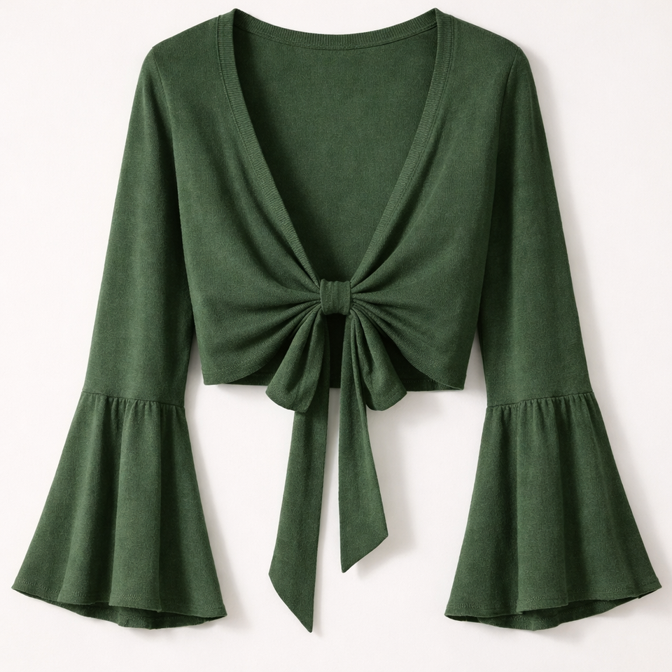 เสื้อเบลาส์ผูกเอวแบบเรียบง่าย น่ารัก ระบายอากาศได้ดี แขนทรงระฆัง สำหรับผู้หญิง คุณภาพสูง ผลิตแบบ OEM ODM ผ้าถัก