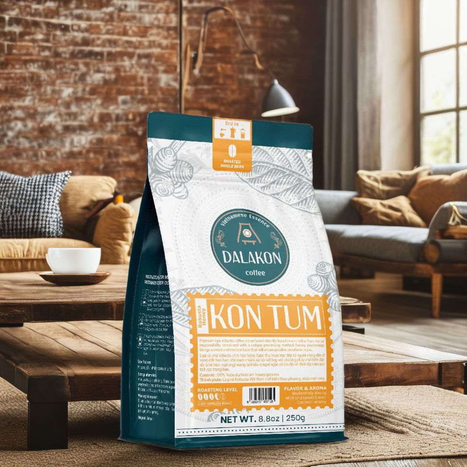 กาแฟโรบัสต้าคั่วอ่อนผสมน้ำผึ้งบดละเอียด รสคาราเมลหวานละมุน ยี่ห้อ OEM/ODM ดาลาคอน เวียดนาม พรีเมียม