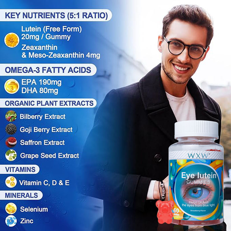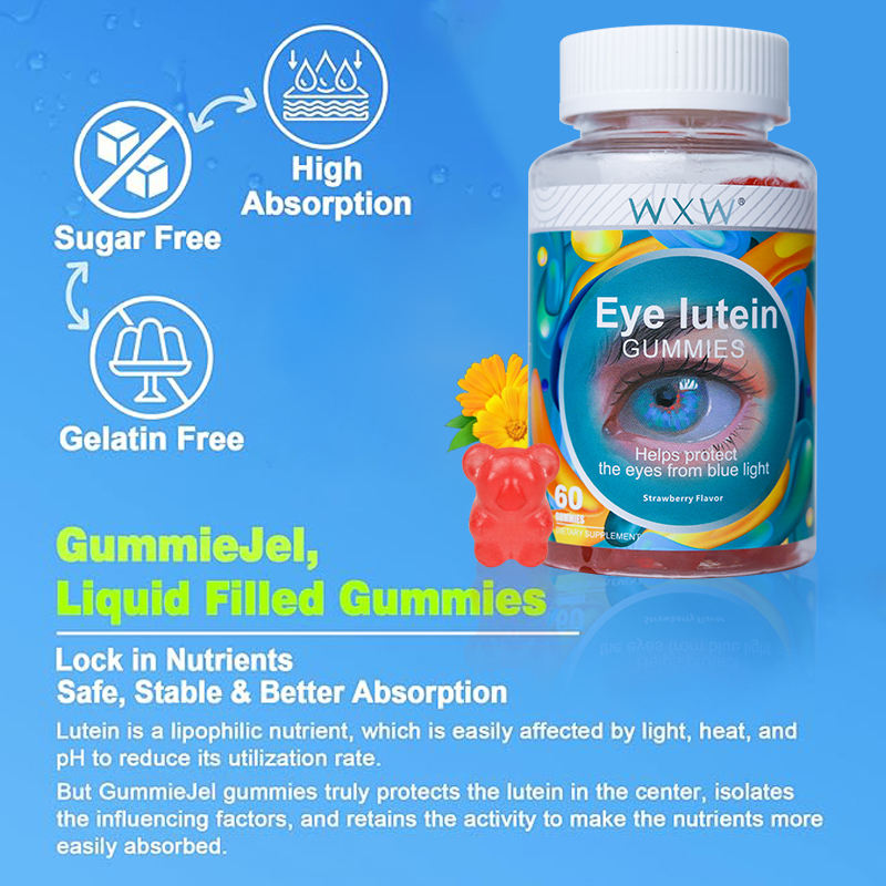อาหารเสริมเพื่อสุขภาพดวงตาของผู้ใหญ่ขนมเยลลี่ลูกอมรสสตรอเบอร์รี่รสชาติอร่อย