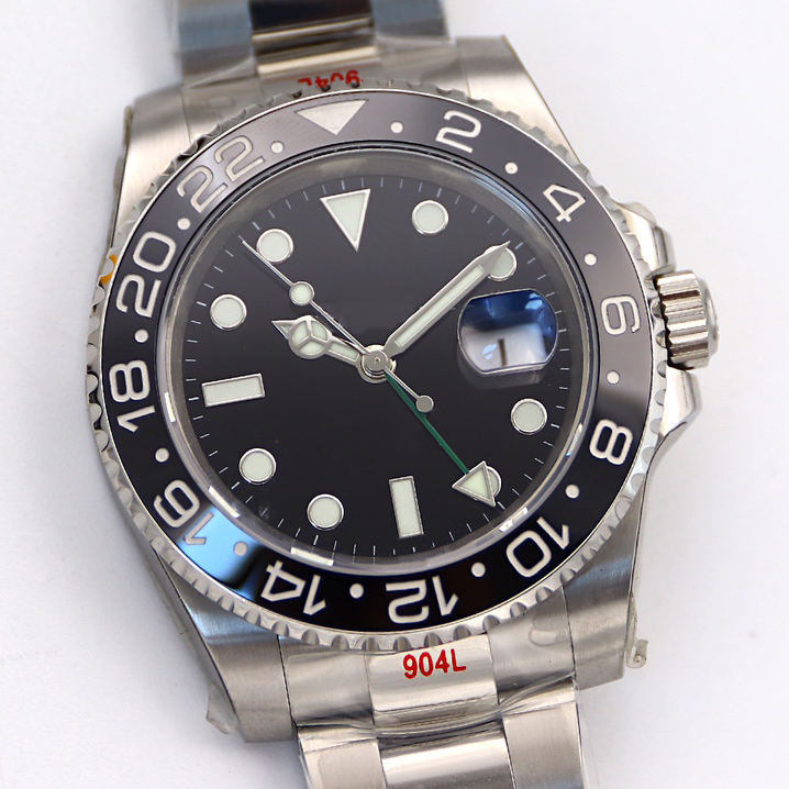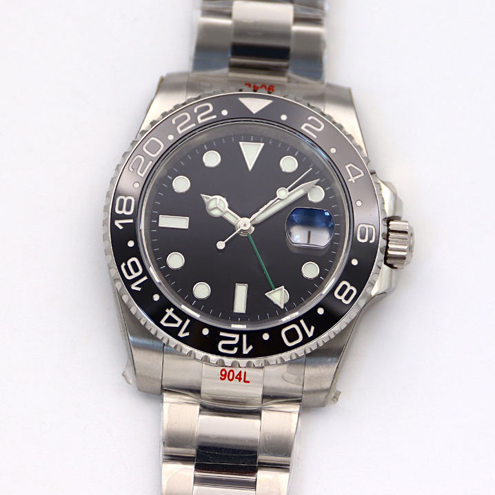 นาฬิกาสปอร์ตดีไซน์ OEM & ODM พร้อมเข็มสีเขียว ขอบสีดำ กระจกแซฟไฟร์ เรืองแสง แสดงวันที่ แฟชั่นอุปกรณ์เสริม ผลิตในจีน