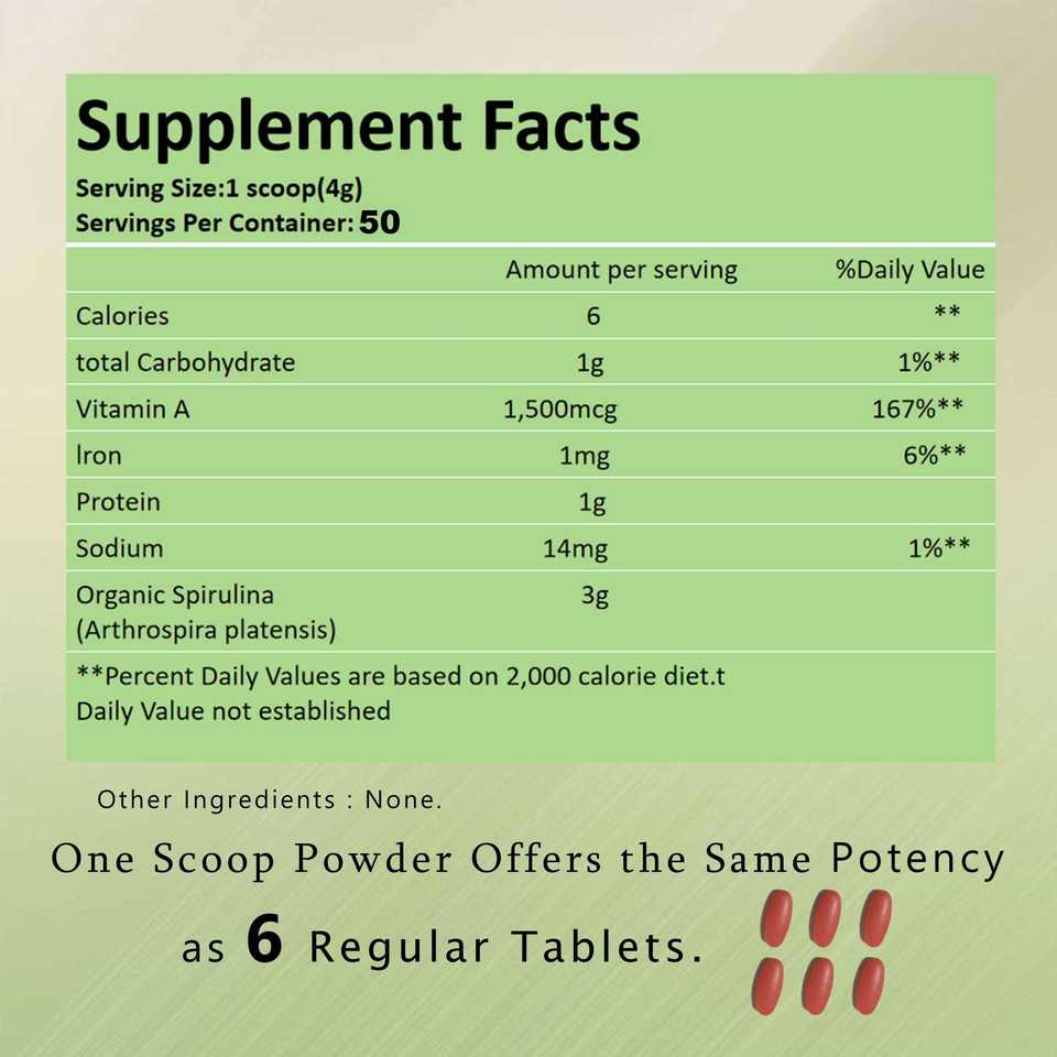 ส่วนผสมหลัก:Organic Spirulina Powder