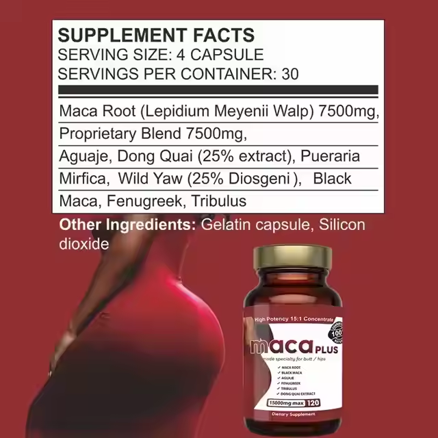 แคปซูลเสริมอาหารมาคาสำหรับสะโพก OEM/ODM, แคปซูลมาคาธรรมชาติช่วยปรับรูปร่างสะโพกให้ใหญ่ขึ้น