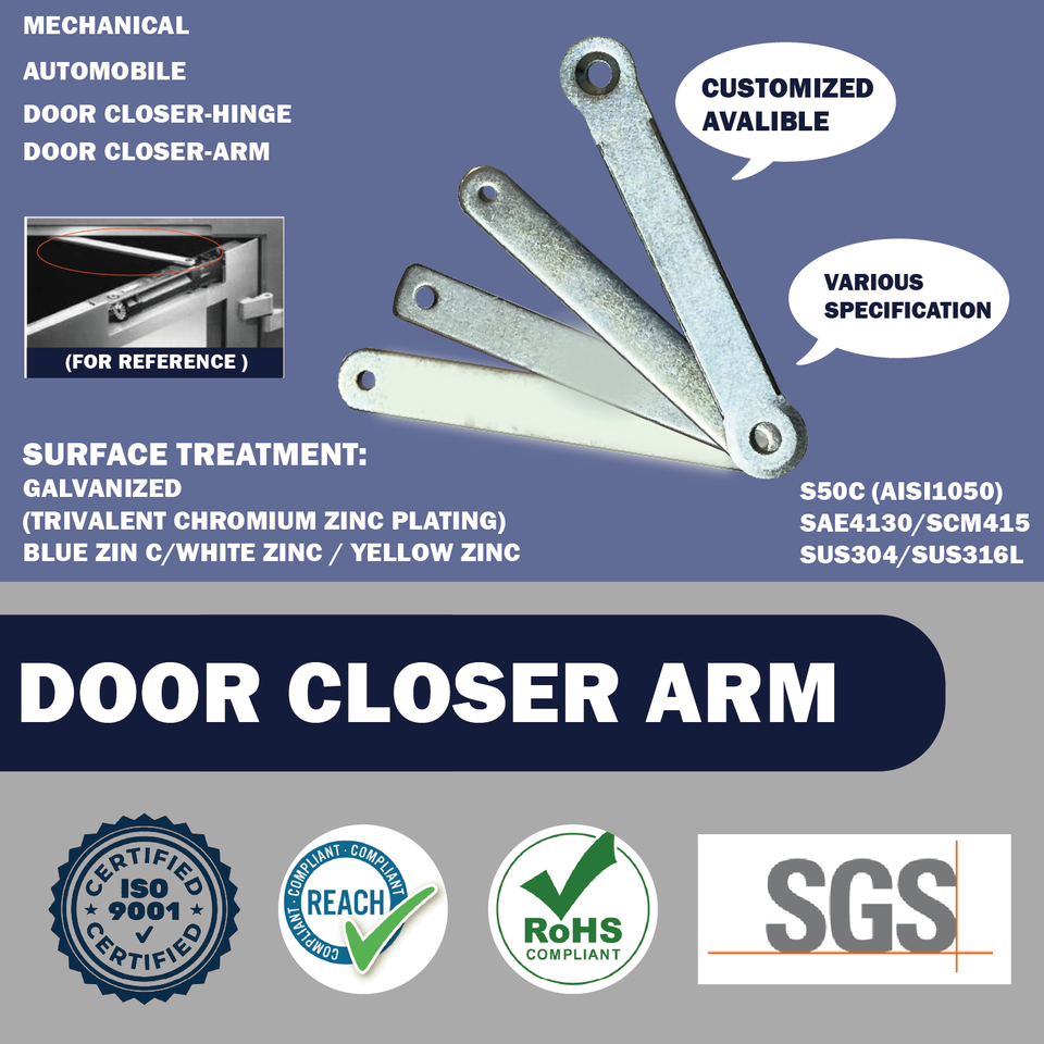OEM/ODM Door closer Arm made of carbon steel with hot treatment. Also accept stainless steel Customized