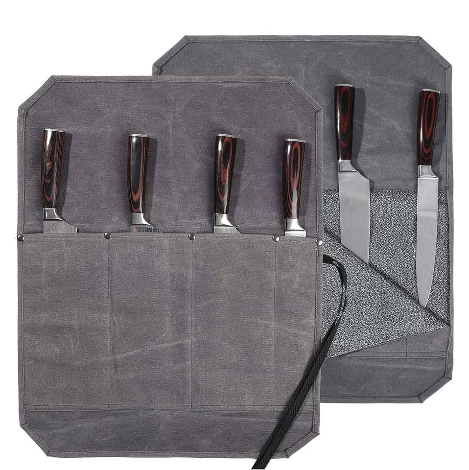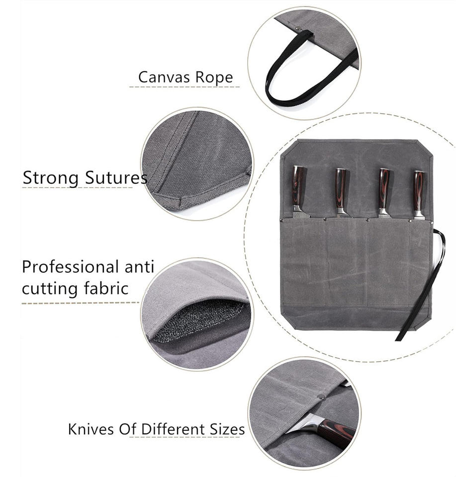 ถุงม้วนมีดเชฟผ้าแคนวาสเคลือบแว็กซ์20ออนซ์เนื้อผ้าทนทานต่อน้ำมี4ช่องป้องกันการตัดผ้าซับน้ำหนักเบาพับเก็บได้