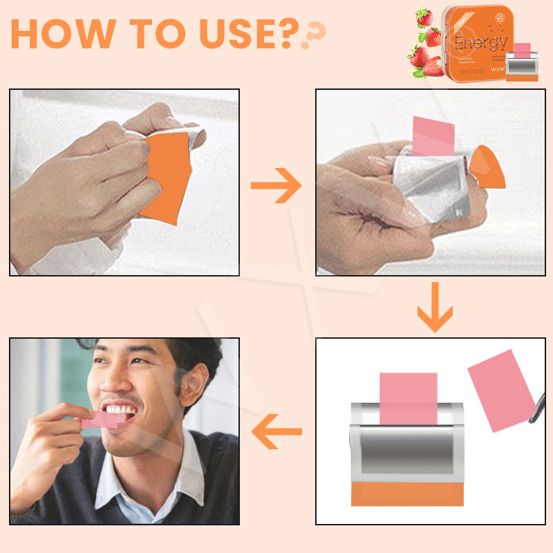 แผ่นฟิล์มเพิ่มพลังให้กับสุขภาพแผ่นฟิล์มลูกอมแถบทางปากเพิ่มพลังงานวิตามินเพื่อสุขภาพโดยรวม