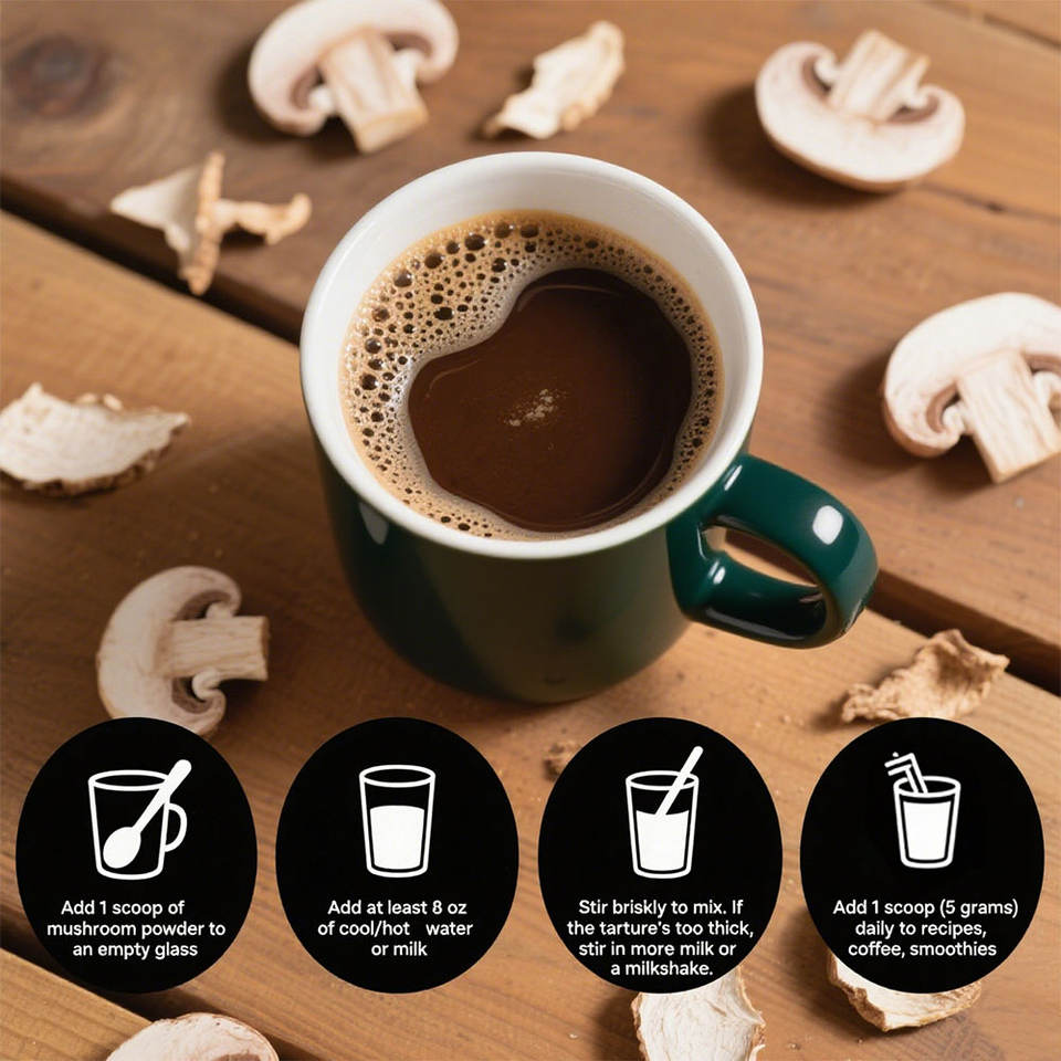 ส่วนผสมหลัก:Chaga Lions mane Mitake Cordyceps เห็ดหลินจือหางไก่งวง