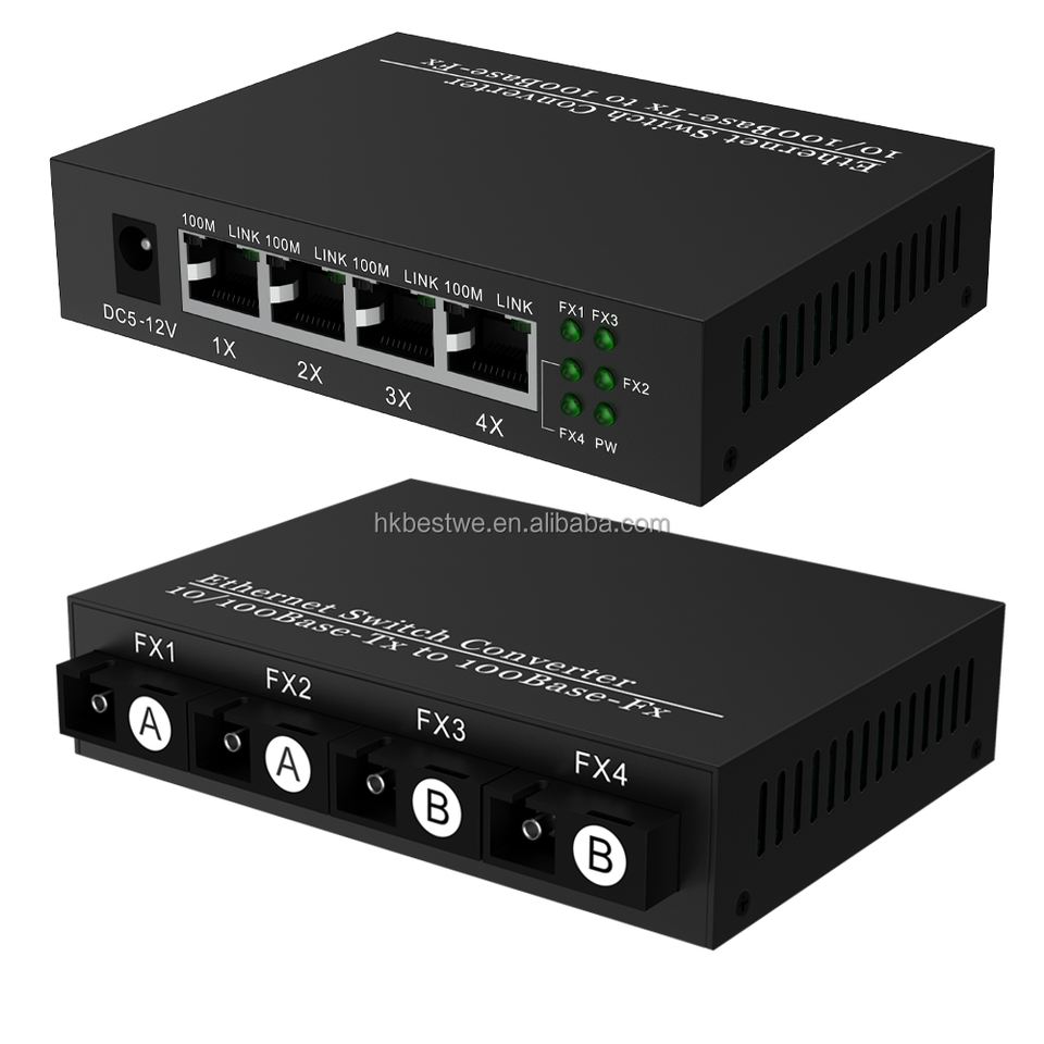 ตัวแปลงสื่ออีเธอร์เน็ต oem/odm 4F4E 4xSC 4xRJ45 20กม. 1310/1550nm 10/100เบส-TX 100Base-FX