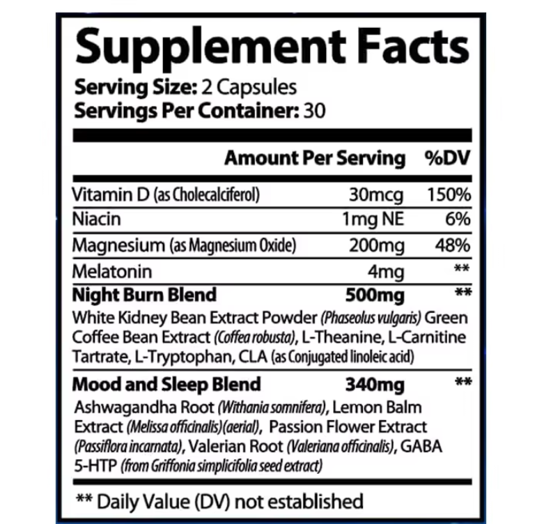 Ingredient:Night Burn Blend, White Kidney Bean Extract Powder
