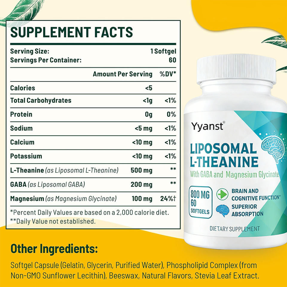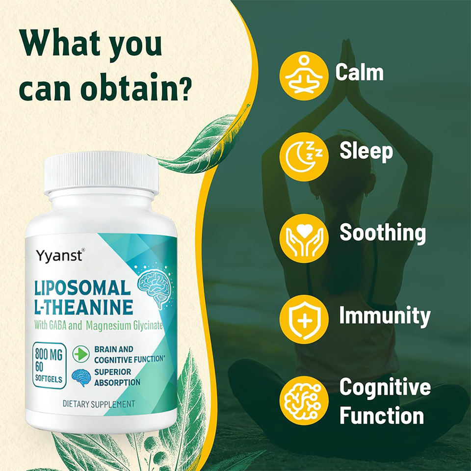 โรงงานผลิตแบบ OEM/ODM ราคาโรงงาน แอล-ธีอะนีน พร้อม GABA บำรุงสมองและสมรรถภาพทางปัญญา ช่วยการนอนหลับ ชนิดแคปซูลซอฟเจล คาร์โบไฮเดรตต่ำและน้ำตาลต่ำ