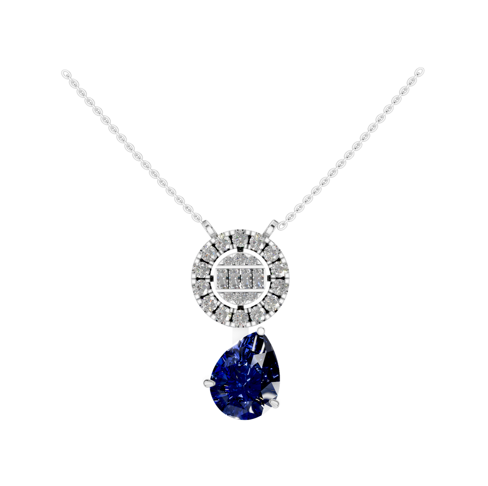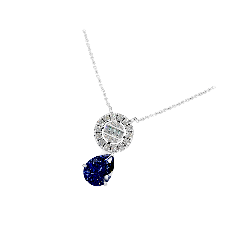 สร้อยคอจี้แพลตตินัม950ประดับเพชรไพลินสังเคราะห์จำนวนมากจากอินเดีย