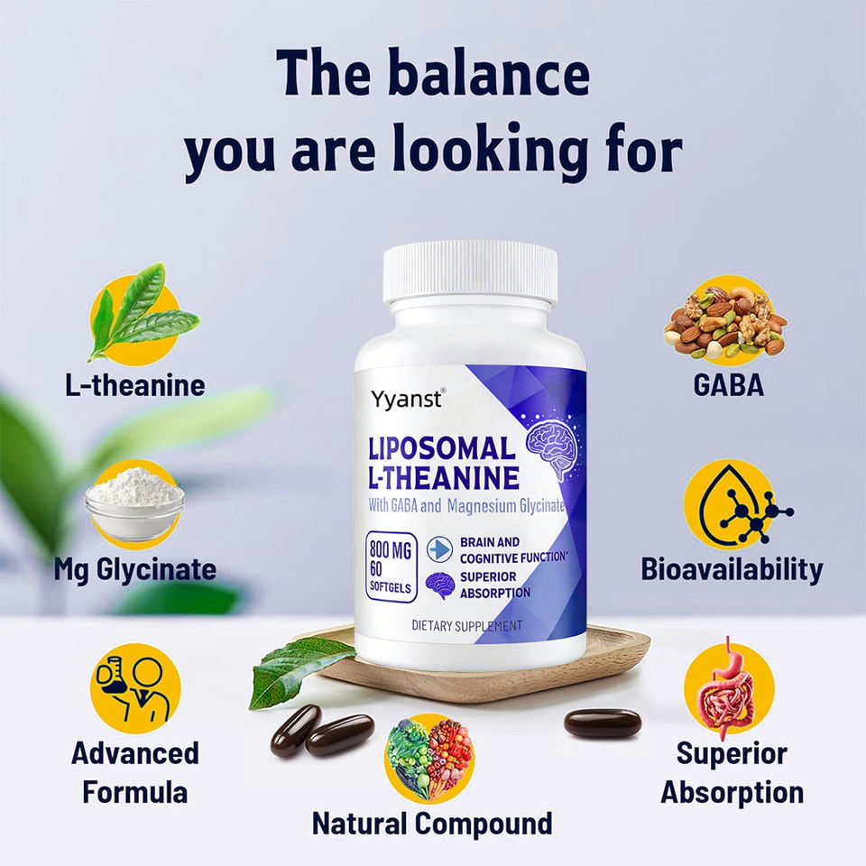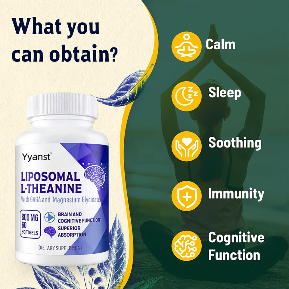 OEM/ODM ตัวอย่างฟรี สูตรขั้นสูง บำรุงการทำงานของสมอง ช่วยการนอนหลับ ซอฟเจลแคปซูล GABA L-theanine คาร์โบไฮเดรตต่ำ น้ำตาลต่ำ