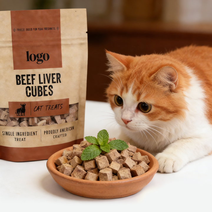 OEM/ODM อาหารสัตว์เลี้ยงแบบเม็ดจากตับวัวอบแห้ง โปรตีนสูง สำหรับแมวและสุนัข ขายส่ง