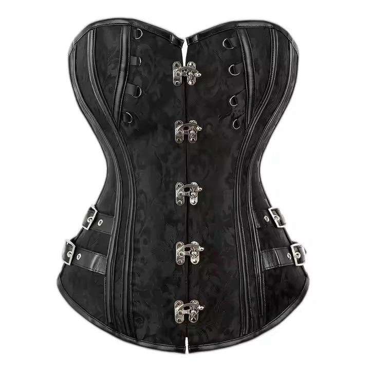 ชุดกระชับสัดส่วนโครงเหล็กแบบกอธิคสำหรับออกกำลังกายเอวแบบกอทิก OEM & ODM มีสายรัดหนังปิดด้านหน้า