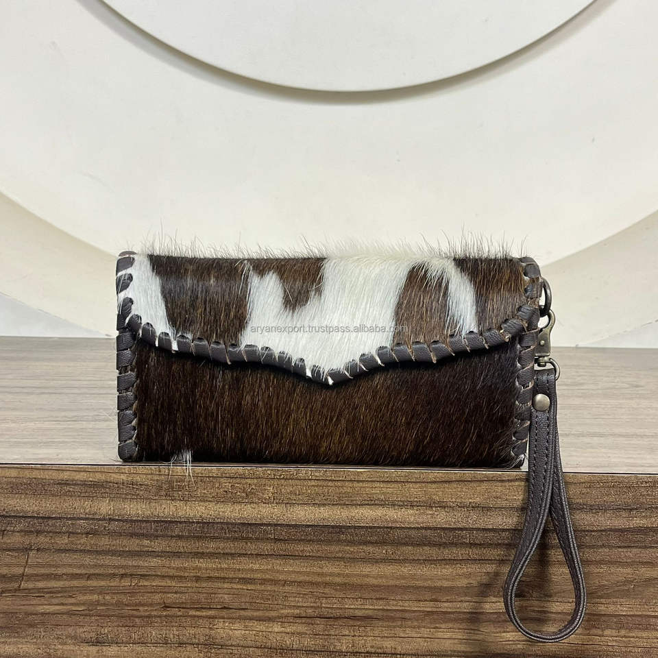 กระเป๋าคลัทช์หนังวัวแท้สำหรับผู้หญิง OEM ODM พร้อมสายคล้องข้อมือหนังแท้ ปิดแบบกระดุม ใส่พาสปอร์ตได้ กระเป๋าสตางค์ใบยาว