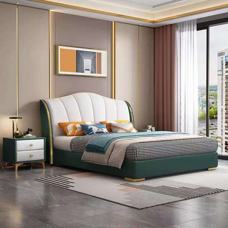 OEM/ODM high-end เฟอร์นิเจอร์ห้องนอนยุโรปหรูหราทันสมัยขนาดคิงไซส์เตียงคู่ใหญ่สูงหนังหุ้มหัวเตียงพิเศษ
