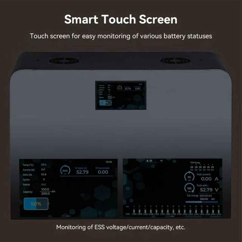 OEM ODM แบตเตอรี่ลิเธียมไอออนคุณภาพสูง 360 วีลส์ พร้อมหน้าจอสัมผัสอัจฉริยะ แรงดันต่ำ สำหรับระบบกักเก็บพลังงานภายในบ้าน RS485 CAN IP55