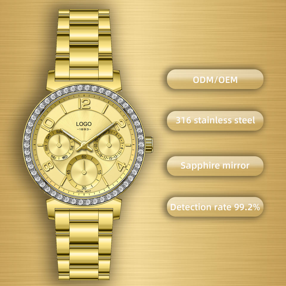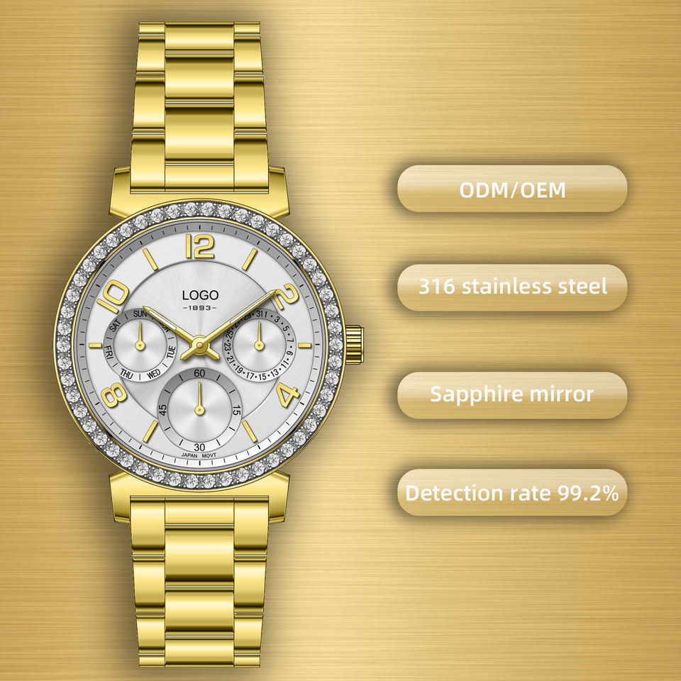 OEM/ODM High Quality Custom Women's Luxury Stainless Steel Quartz Watch Sapphire Mirror Pointer Dial 3BAR Water Resistant