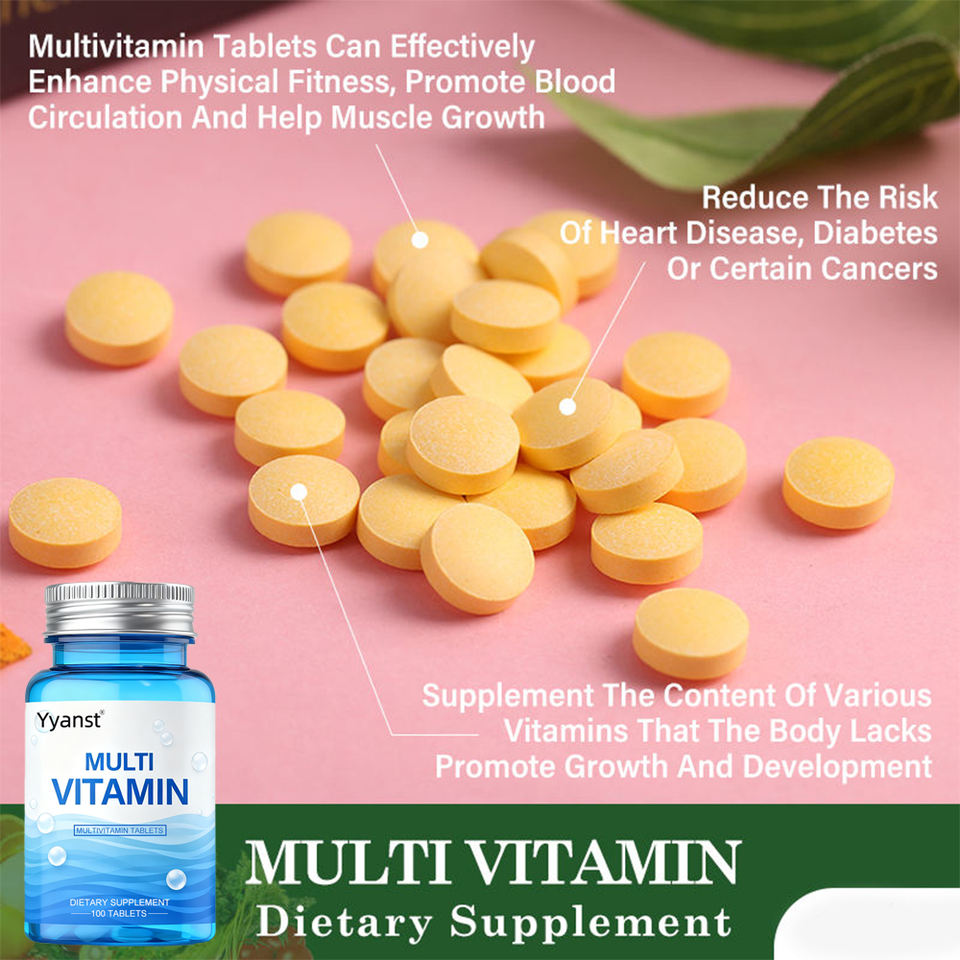 แท็บเล็ตมีวิตามินสำหรับผู้ใหญ่สำหรับผู้หญิง OM/ODM ส่วนผสมที่มีคุณภาพสูงรองรับภูมิคุ้มกันและประโยชน์ต่อความงาม