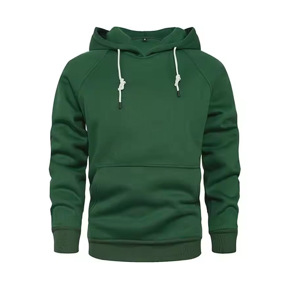 เสื้อฮู้ดแบบสวมศีรษะของผู้ชายสีเขียวทึบผ้าคอตตอน100% โลโก้ตามสั่ง