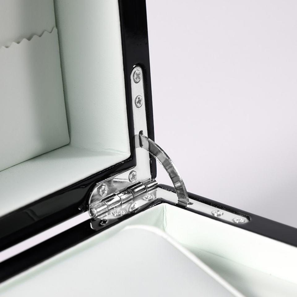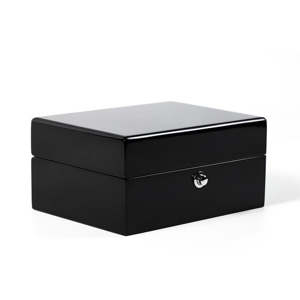 กล่องนาฬิกาไม้คุณภาพสูง OEM ODM สีดำเคลือบเงาแบบเปียโน ฝาพับล็อคได้ สำหรับเก็บนาฬิกา