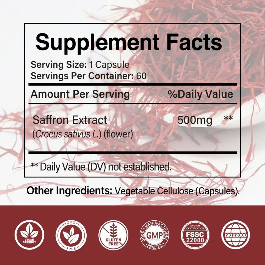 OEM ODM ขายดี อาหารเสริมสมุนไพรหญ้าฝรั่นแท้ บริสุทธิ์ สารสกัดหญ้าฝรั่นแบบแคปซูล
