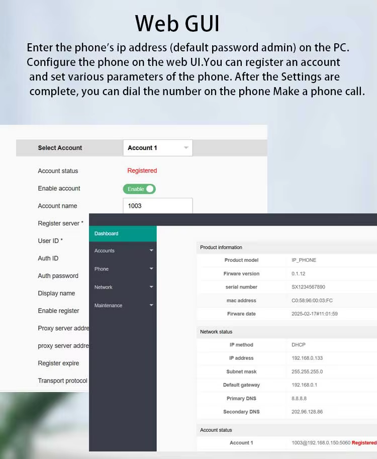 Function:Conference /Send/Call Recording/Redial/Hold/Call Forward/Mute