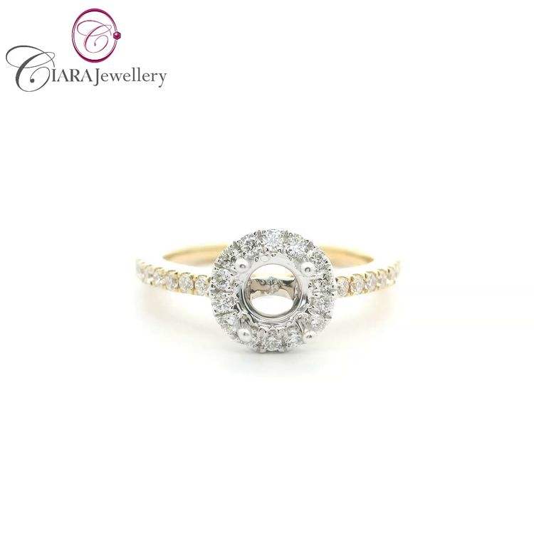 โอดีเอ็ม AU750สีทอง18K สีขาวทองเพชรสองสีทรงกลม6มม./0.75ct แหวนสำหรับงานแต่งงาน