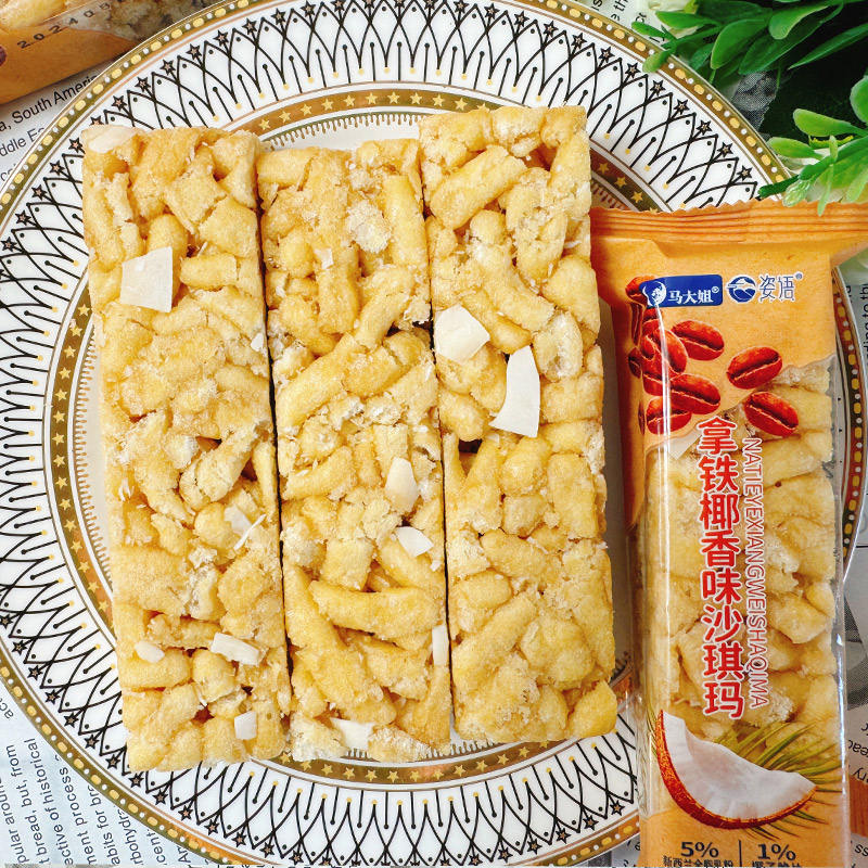 ขนมลาเต้รสมะพร้าวซาจิมะคาราเมลขนมอบขนมขนมไข่ขนมขนมอบขนมอบขนมอบแปลกใหม่เพื่อสุขภาพดี sachima พัฟเค้ก
