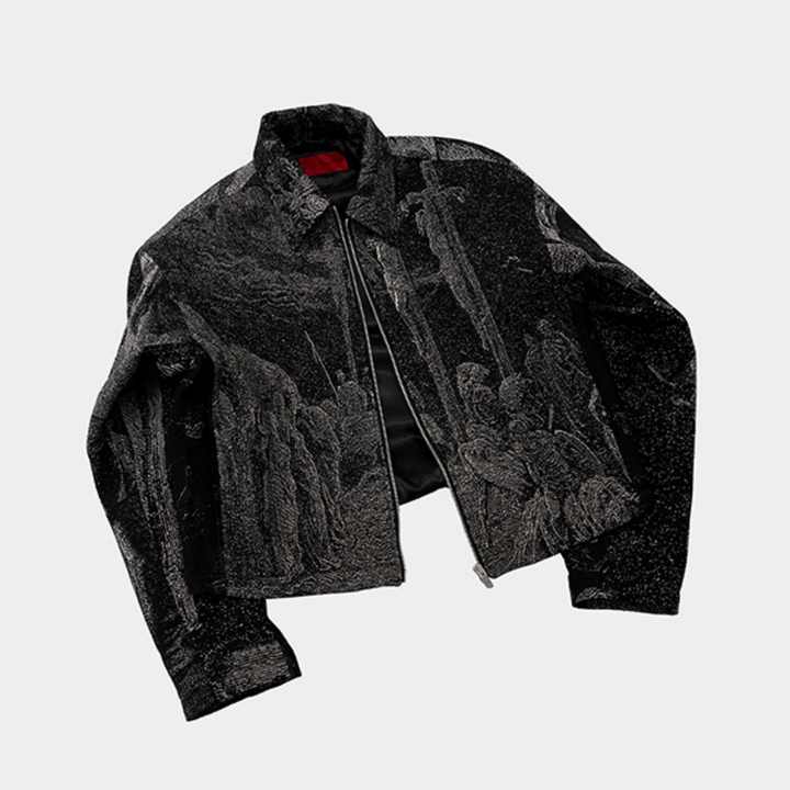 เสื้อแจ็คเก็ตแขนยาวผ้าแจ็คการ์ดเนื้อหนาแบบ OEM & ODM ปกคอพับได้ เสื้อถักลำลองแบบมีซิป ตกแต่งลวดลายสำหรับฤดูหนาว ผ้าเมอร์เซอไรซ์