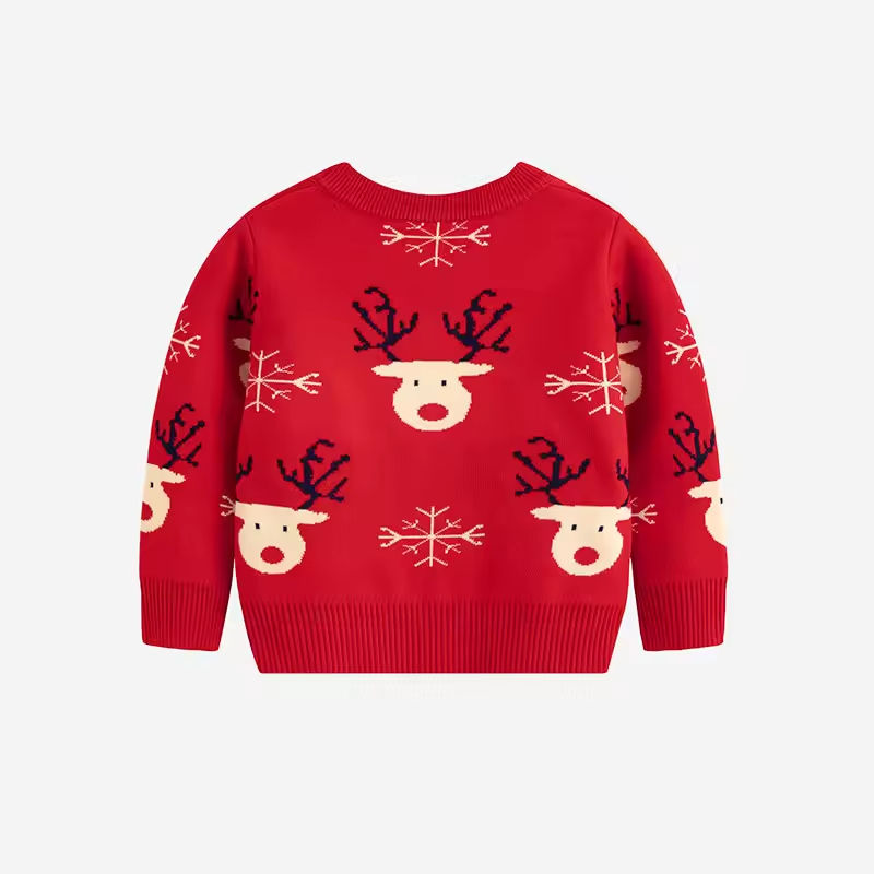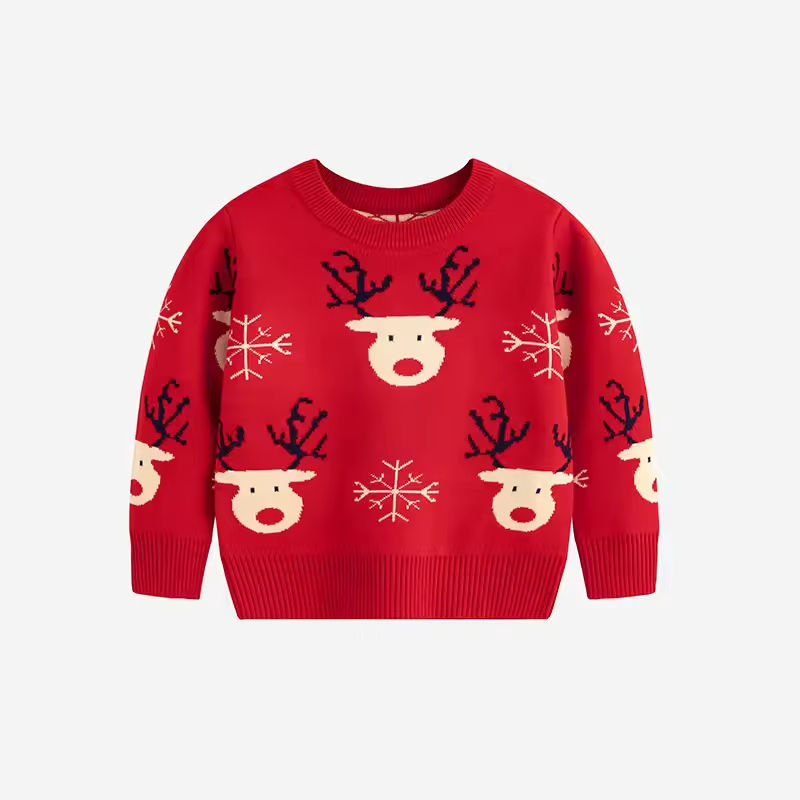 ผู้ผลิต OEM/ODM เสื้อกันหนาวคริสต์มาสแบบกำหนดเอง เสื้อถักสีแดงสำหรับเด็กชาย เด็กหญิง และเด็กทารก คอกลม ลายการ์ตูน