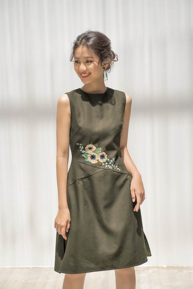 เดรสลำลองผ้าทอธรรมชาติมีซิปปักลายดอกไม้ผลิตจากเวียดนาม