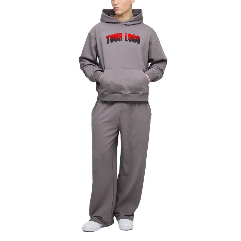 ชุดเซ็ต 2 ชิ้นสำหรับผู้ชาย OEM/ODM เสื้อฮู้ดโอเวอร์ไซส์ผ้าฟลีซ กางเกงลำลองผ้าฝ้าย 100% ทรงหลวม คอลเลคชั่นฤดูหนาว