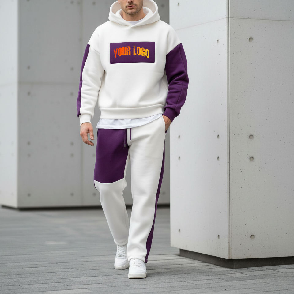 เสื้อฮู้ดโอเวอร์ไซส์ทรงหลวมแบบ 2 ชิ้นสำหรับผู้ชาย OEM/ODM กางเกงขาบาน สไตล์ลำลองสำหรับฤดูหนาว สตรีทแวร์สีพื้น ผ้าหนาสองชั้น ล้างสีแบบแอซิดวอช