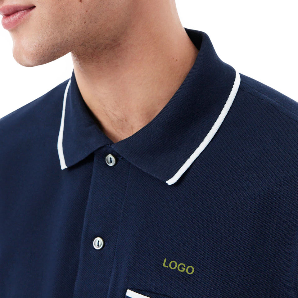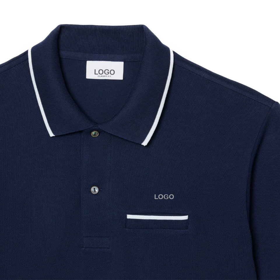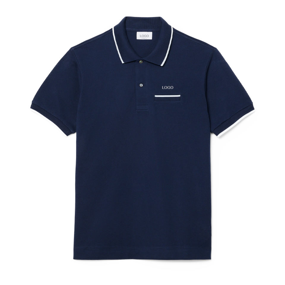 เสื้อเชิ้ตผู้ชายทรงคลาสสิค ผ้าฝ้ายพรีเมียม ตัดเย็บแบบ OEM ODM กระเป๋าเสื้อที่อก แต่งขอบตัดกัน ระบายอากาศได้ดี ผ้าปิเก้ รับสกรีนโลโก้ตามแบบ