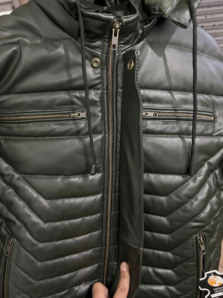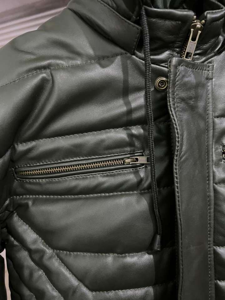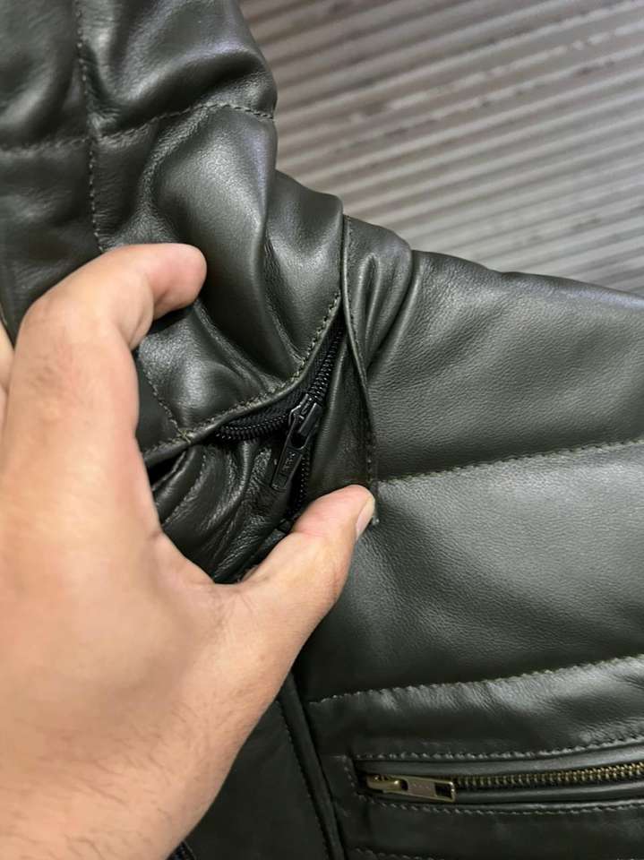 เสื้อแจ็คเก็ตฤดูหนาวแบบพัฟเฟอร์สำหรับผู้ชาย ผลิตแบบ OEM/ODM เป็นมิตรกับสิ่งแวดล้อม สไตล์ไบค์เกอร์ บอมเบอร์ แฟชั่นสำหรับขี่มอเตอร์ไซค์ ทำจากหนังแกะแท้ MOQ ต่ำ