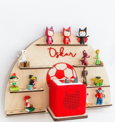 ชั้นวางของ Tonie รุ่น 10020 ยี่ห้อ Minghang แบบ OEM ODM สำหรับฟิกเกอร์ฟุตบอล 30 ตัว ทำจากไม้ ลายฟุตบอล ใช้เป็นกล่องของเล่นและที่จัดเก็บ