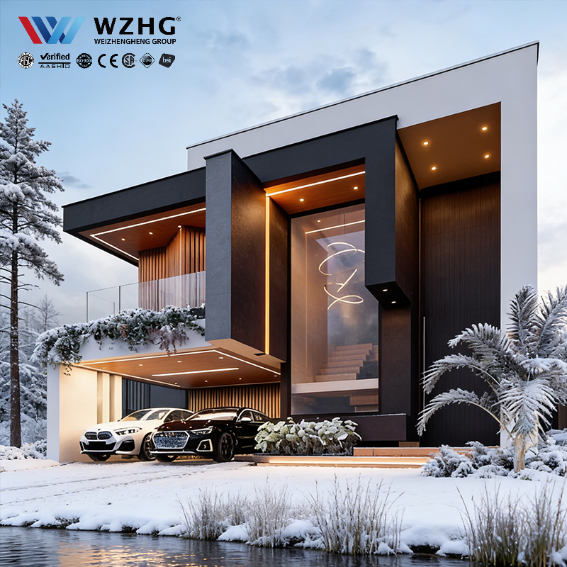 บ้านวิลล่าสำเร็จรูปโครงสร้างเหล็กเบาแบบโมเดิร์น OEM/ODM บ้านสำเร็จรูปหรูหราปรับแต่งได้ตามความต้องการ