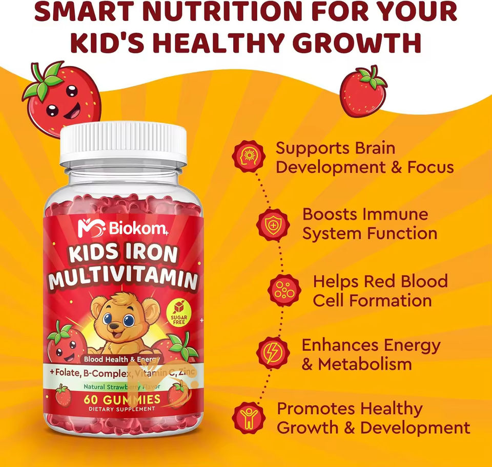 วิตามินเสริมสำหรับเด็ก รูปแบบเยลลี่ รสผลไม้ธรรมชาติ แคลเซียม ธาตุเหล็ก ซิงค์ OEM ODM