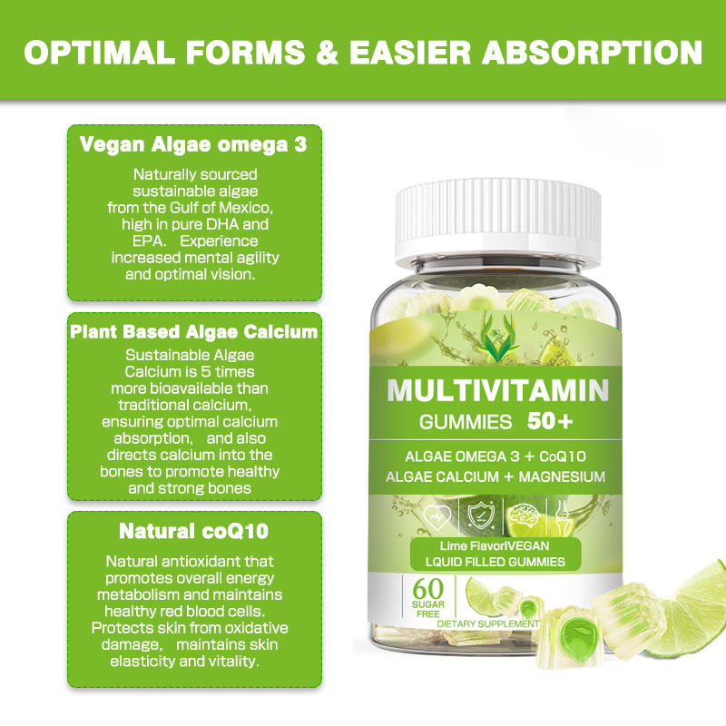 ส่วนผสมหลัก:วิตามินเอ, วิตามินซี, วิตามิน D3, วิตามินอี, วิตามิน K2, ไรโบฟลาวิน, เนียซิน, กรดแพนโทธีนิก, วิตามิน B6, โฟเลต, วิตามิน B12, แคลเซียม, แมกนีเซียม, สังกะสี, ฟอสฟาติดิลเซรีน, สารสกัดจากขมิ้น, โคเอนไซม์ Q10, น้ำมันสาหร่าย, กรดไขมันโอเมก้า3ทั้งหมด, อีพีเอ, ดีเฮา