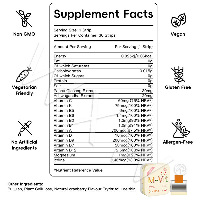 ชื่อผลิตภัณฑ์:M-VIT แถบช่องปาก