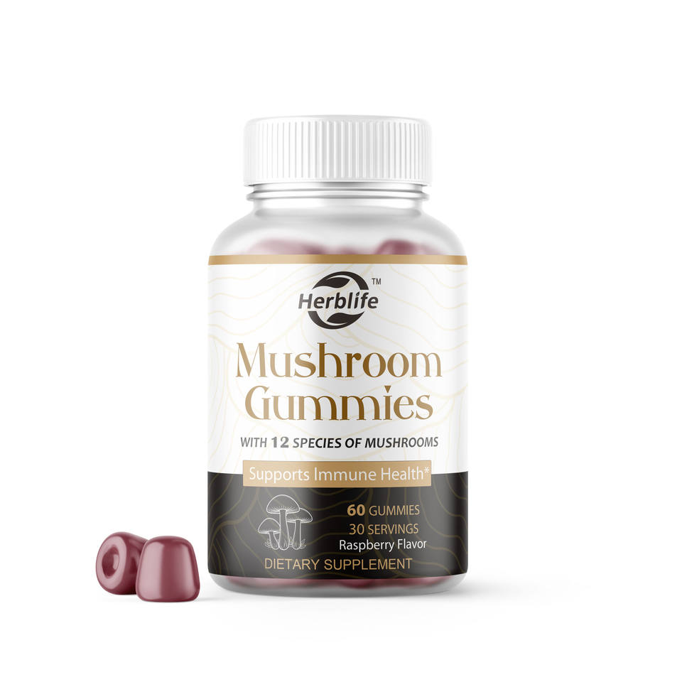 กัมมี่เห็ดโอเดมแบบออลอินวันกัมมี่ที่ใช้งานได้กับส่วนผสมเห็ด12ชนิดรวมไปด้วยแผงคอสิงโตเรสชิกาและคอร์ดิเซป