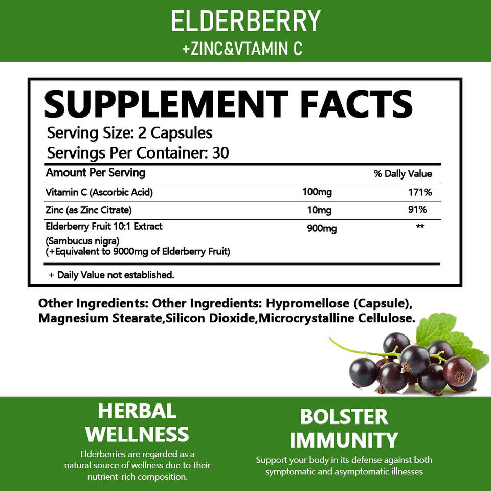 Vitamin C, Zinc, Elderberry Fruit Extract