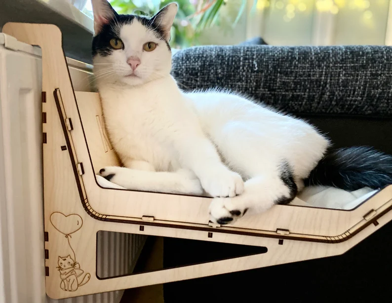 ตะกร้าสำหรับแมวแบบแขวนส่วนตัวทำจากไม้เบิร์ชสำหรับหม้อน้ำของเล่นสัตว์เลี้ยงแบบโต้ตอบและเคลื่อนไหวได้