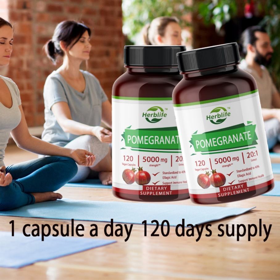 แคปซูลสารสกัดทับทิมแบบ OEM / ODM | ไม่ใช่จีเอ็มโอ (120 หน่วยบริโภคต่อหน่วย), สารต้านอนุมูลอิสระ, เสริมสร้างภูมิคุ้มกัน